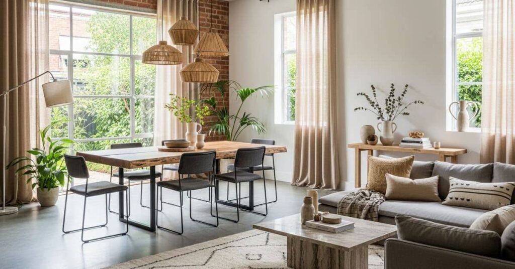 | Organic | Wood, Rattan, Plants | Softens the look, adds warmth |