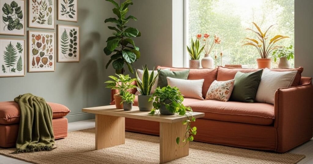 Balance is key. Group plants in clusters and leave open spaces for breathing room. Use a mix of sizes and heights to create depth without clutter. Incorporate neutral-colored furniture to keep the room visually calm.