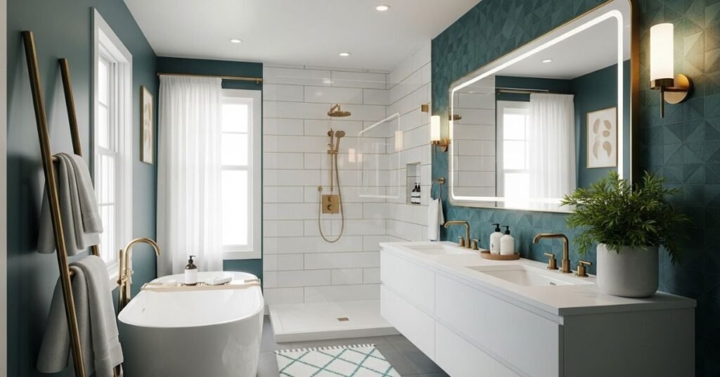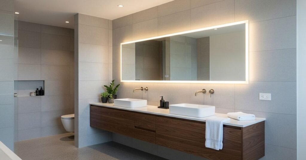- Accent lighting (like LED strips under cabinets or around mirrors) for a high-end glow.