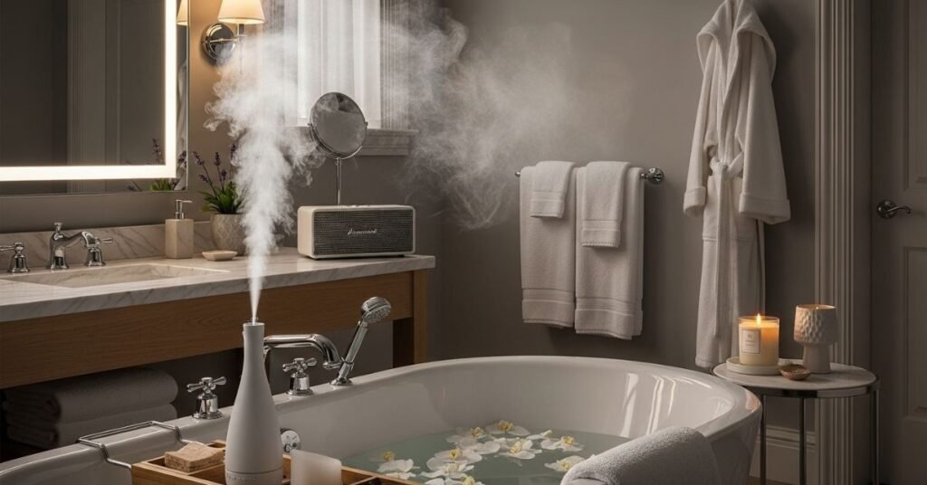 Scent plays a powerful role in luxury. A subtle diffuser, candle, or essential oil blend can instantly elevate your bathroom experience.