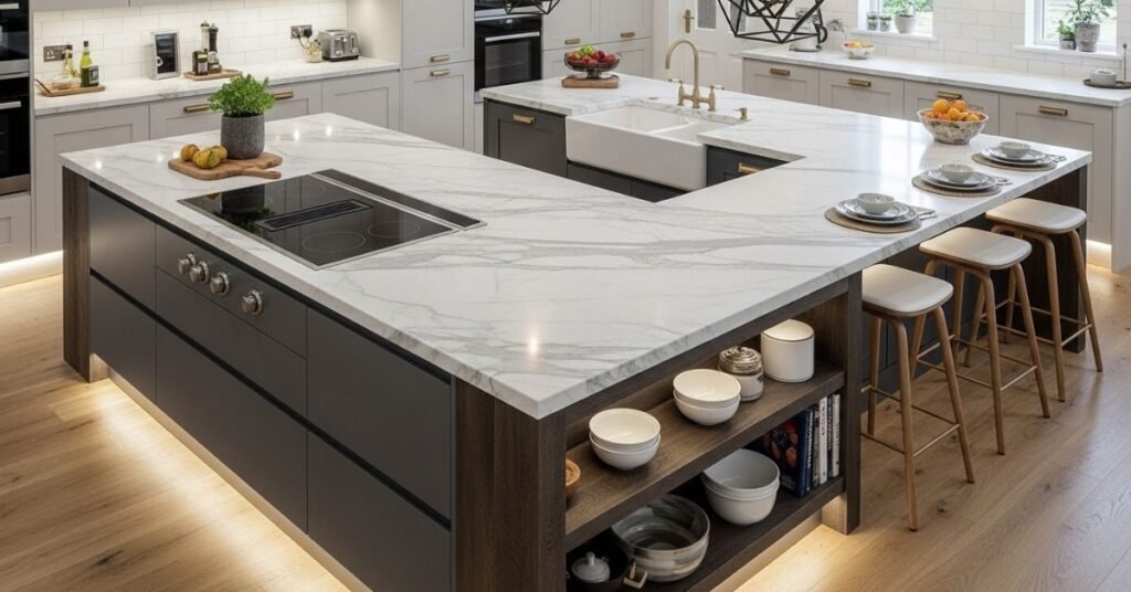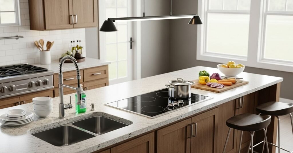 Proper planning ensures safety and functionality while maintaining the island’s clean aesthetic.